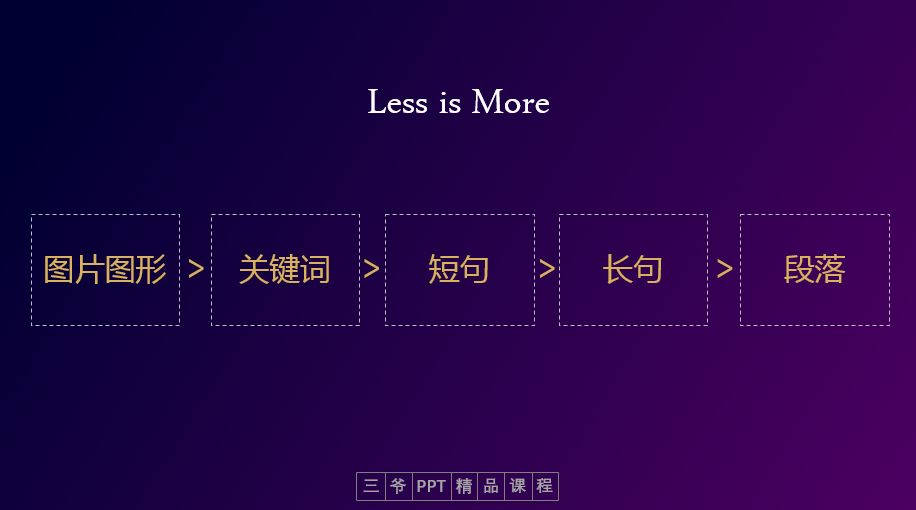 那么对于文本型幻灯片我们到底该如何设计呢?这里给大家介绍三爷独家秘笈——“两化融合”。