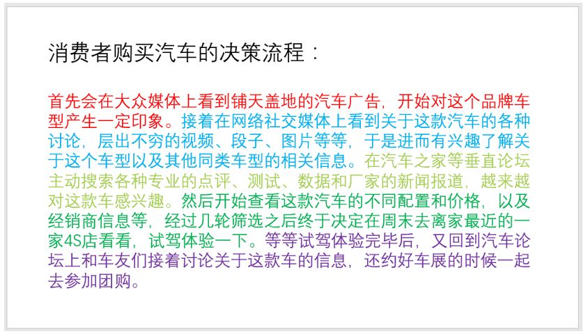 但是,我们在上篇文章作业中提到这是演讲型PPT,这些文字信息能够让听众“瞟”而不是“读”吗?当然不能,所以,我们还得继续解构,只保留关键词,删掉所有解释性文字长句。