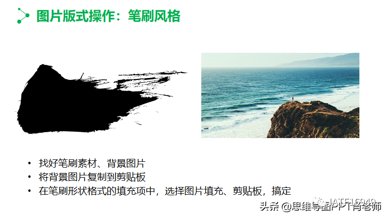 在笔刷形状格式的填充项中,选择图片填充、剪贴板,搞定。