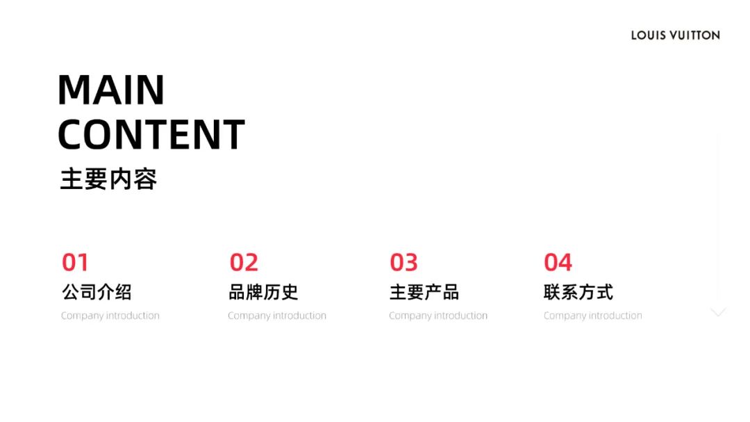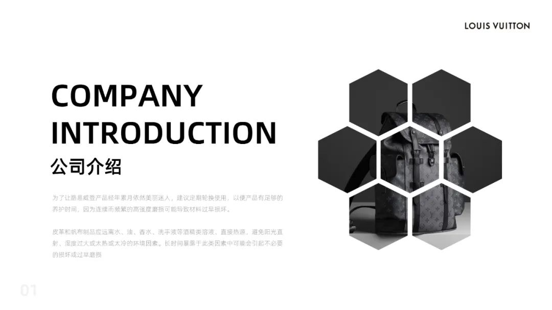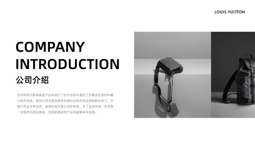 今天给大家带来的作品,是我们为LV所设计的一组品牌PPT。整套PPT的作品风格设计,是用到官方标配的黑白色调。